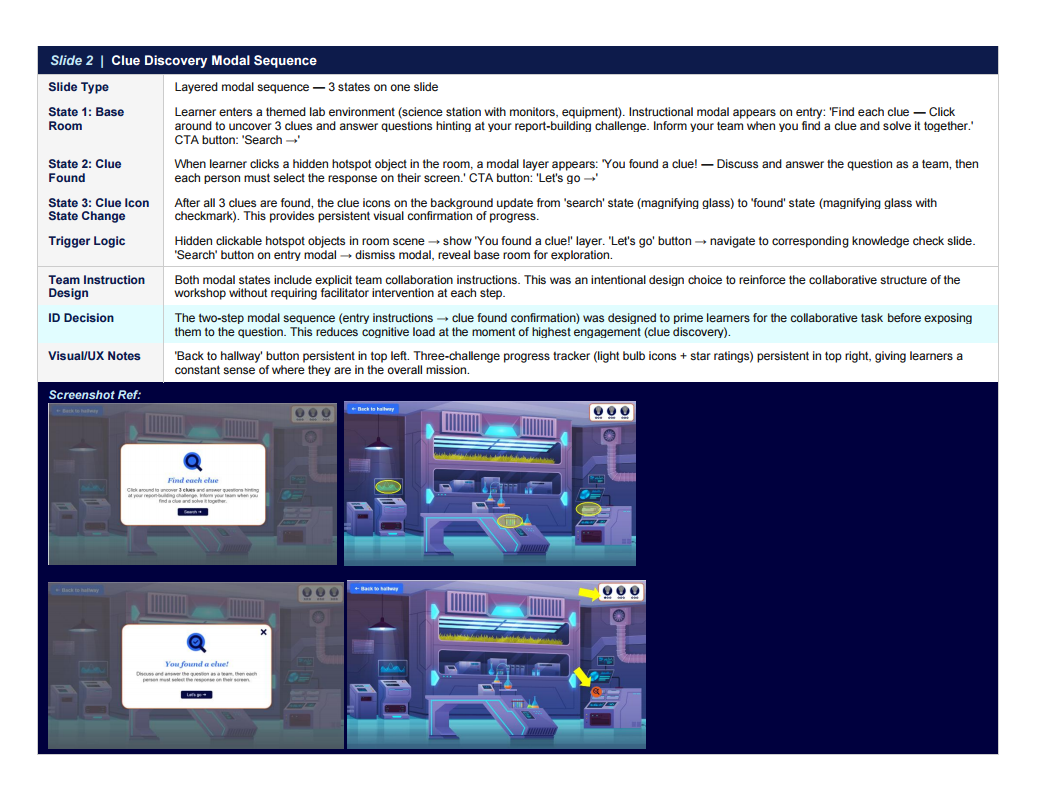 This storyboard was created to showcase the Blended Learning Digital Workshop experience. The document below describes the four representative interaction sequences from the workshop in great detail. Each section captures the screen description, learner interaction, key instructional design decisions, and trigger logic. Content has been masked to remove proprietary information; fictional platform names and data are used throughout.
