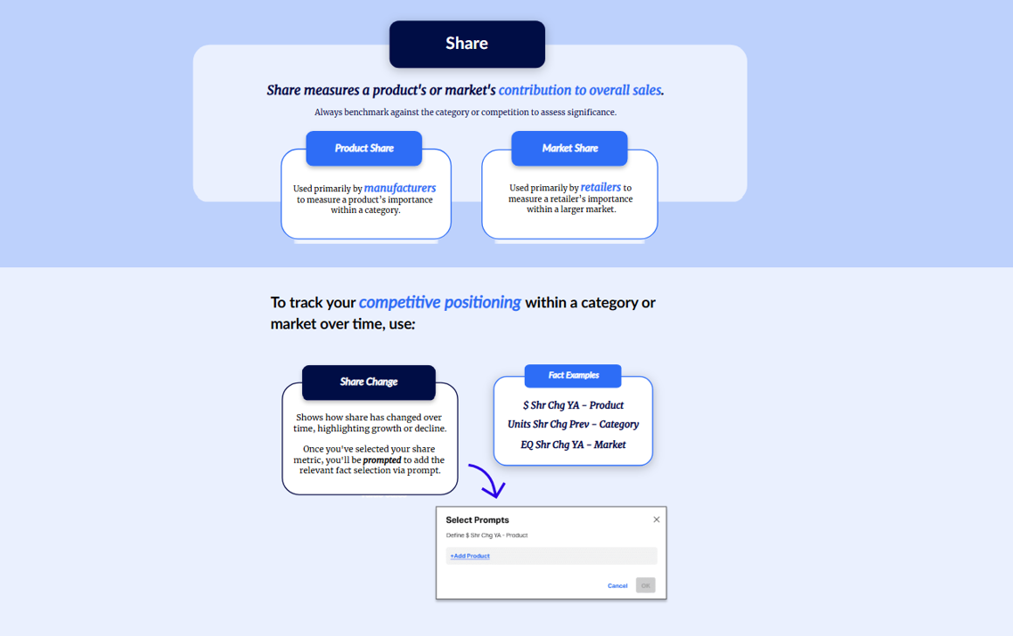 Designed real‑world metric explanations and guided report‑building steps.