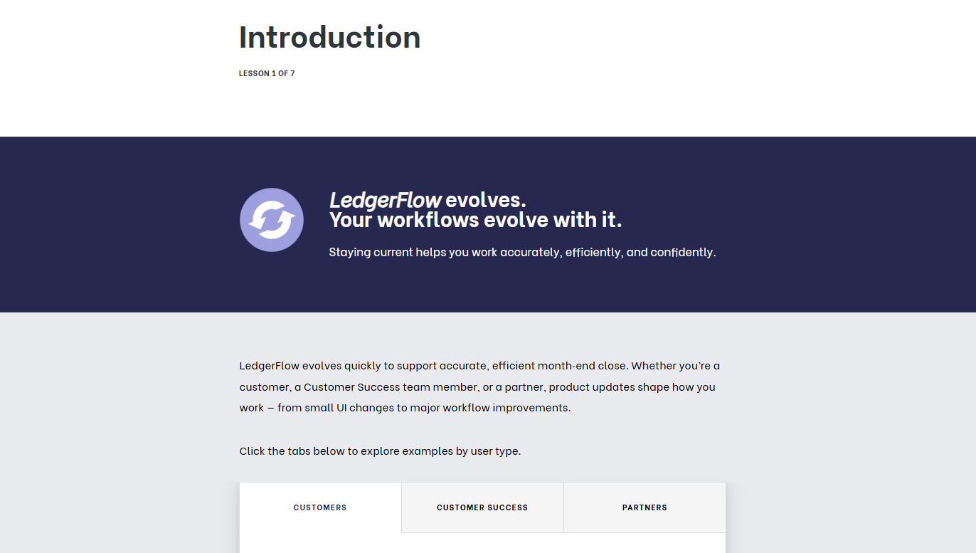 LedgerFlow’s users struggled to keep up with frequent product updates, often relying on ad‑hoc communication or incomplete information. This led to confusion about workflow impact, inconsistent troubleshooting, and reduced confidence during critical accounting periods. The organization needed a scalable, update‑agnostic learning approach that empowered users to stay current without requiring a new training for every release.